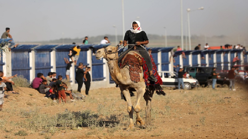 غزة: استعرض عدد من الشباب في قطاع غزة، مهاراتهم في ركوب الخيل على الحدود الشرقية للقطاع.