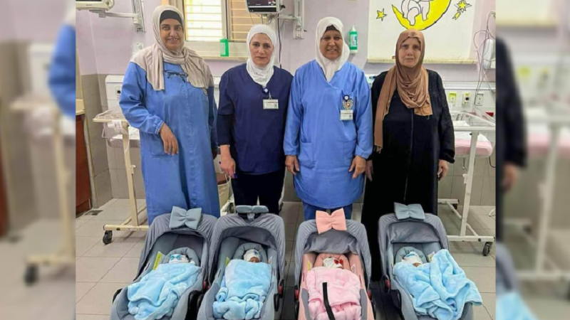 غزة: أنجبت زوجة الأسيرأحمد الشمالي من مدينة غزة اليوم الاثنين بـ 4 توائم، حملت بهم عن طريق "نطف مهربة، من زوجها في سجون الاحتلال.
