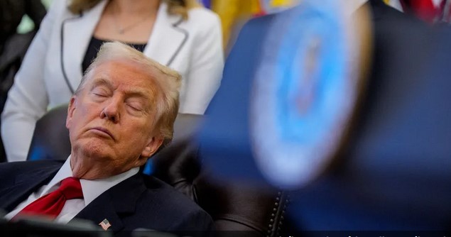 الكوفية أثارت صور للرئيس الأميركي دونالد ترامب، بدا  فيها نائما خلال فعالية رسمية في المكتب البيضاوي، موجة من التفاعل والجدل عبر منصات التواصل الاجتماعي، ودعت البيت الأبيض إلى التعليق.