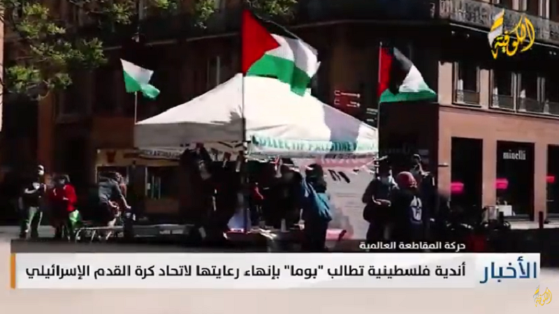 أعلنت الحركة العالمية لمقاطعة دولة الاحتلال وسحب الاستثمارات وفرض العقوبات عليها «بي دي إس»، أن منسوبي أكثر من 200 مركز وناد رياضي فلسطيني طالبوا في رسالة مفتوحة شركة «بوما» الألمانية بإنهاء رعايتها اتحاد كرة القدم الإسرائيلي. المزيد في التقرير التالي: