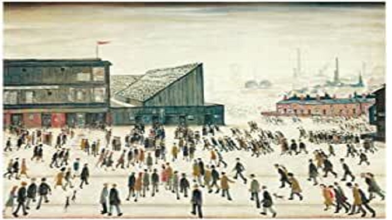 ويُظهر العمل الذي يعود تاريخه إلى عام 1953، أشخاصاً يتوجّهون إلى أحد الملاعب في شمال غرب إنكلترا.