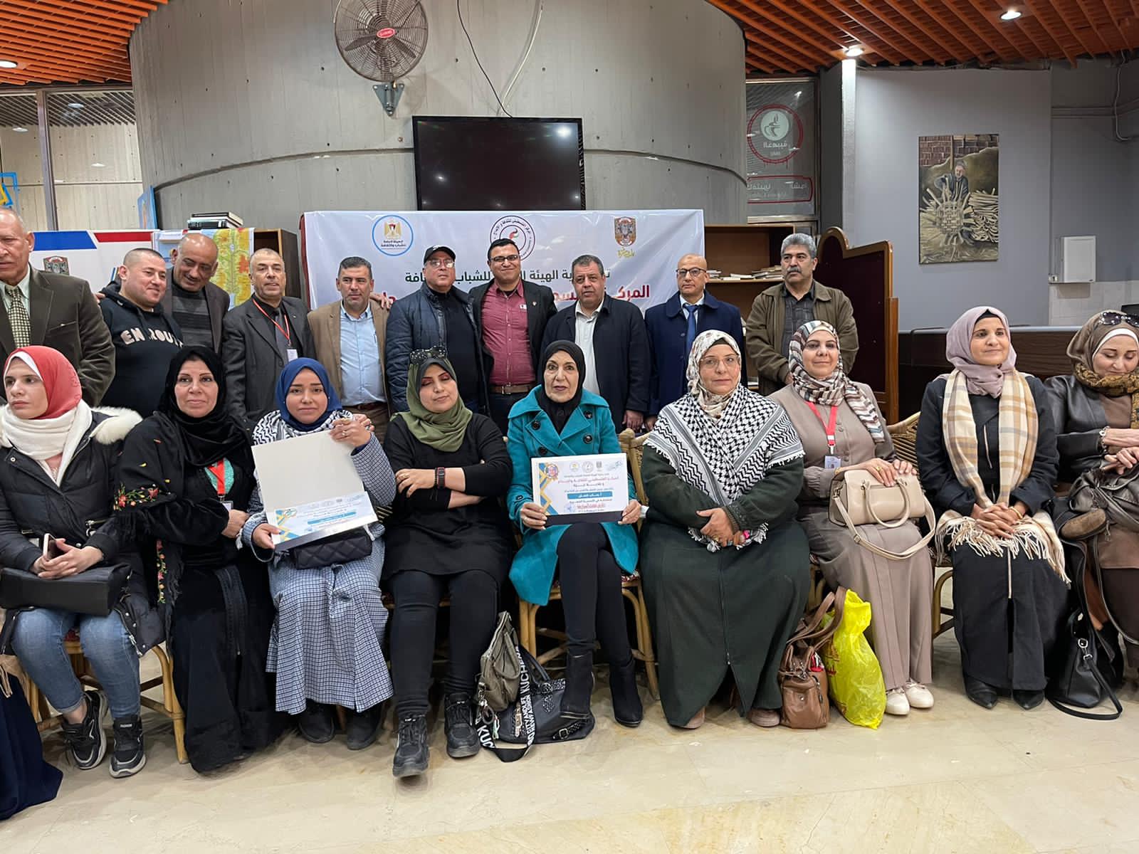وفي نهاية الأمسية الشعرية تم تكريم الشعراء بشهادات تقدير والضيوف تعبرياً على الحب والوفاء، حيث التقط الجميع صورة فوتوغرافية تُوثق في صندوق المشهد الثقافي الفلسطيني.