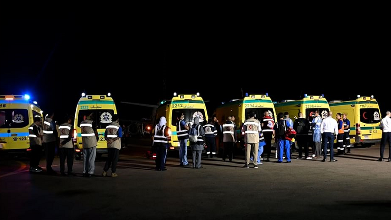 وحطت الطائرة القادمة من مطار العريش في جمهورية مصر العربية، في مطار أبوظبي، وتحمل على متنها الأطفال الذين هم في أمس الحاجة للمساعدة الطبية ممن يعانون إصابات وحروق شديدة، ومرضى سرطان يحتاجون إلى علاج حثيث.
