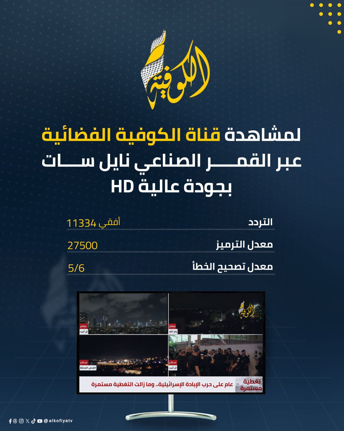 متابعينا الكرام.. لمشاهدة قناة الكوفية عبر التردد الجديد على القمر الصناعي نايل سات بجودة عالية HD يرجى ضبط التردد التالي: