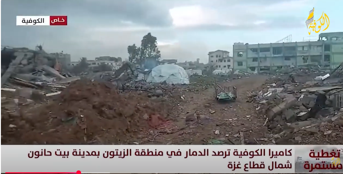 كاميرا الكوفية: ترصد الدمار في منطقة الزيتون بمدينة بيت حانون شمال قطاع غزة